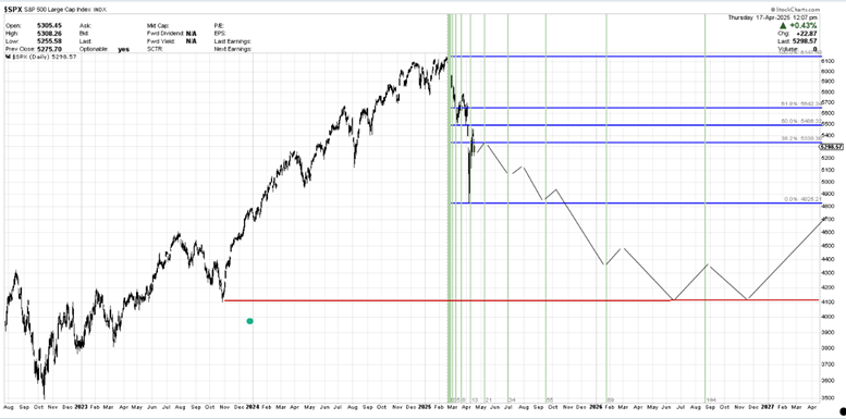 - Stock Market Impact: If trade deals cannot be reached, it seems almost inevitable the economy will go into a recession. The stock market will move lower based upon the reduction in corporate earnings, likely retracing back to the November 2023 lows.
